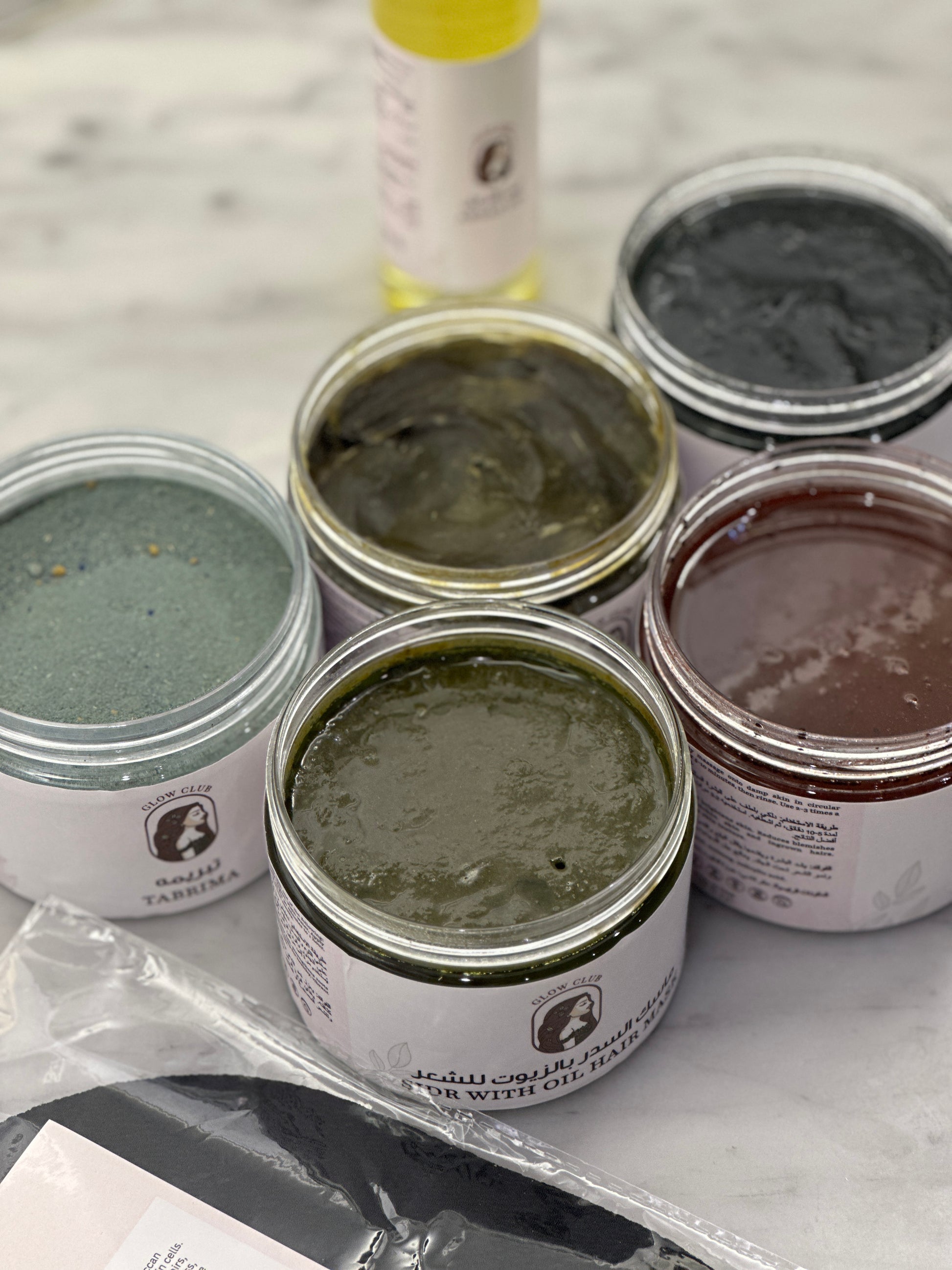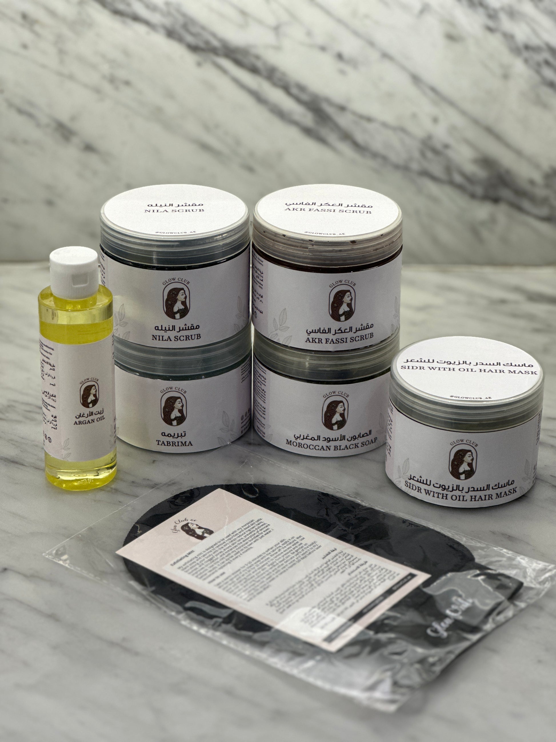 Argan Oil, Sidr with Oil Hair Mask, Tabrima & Moroccan Black Soap, Nila Scrub, Akr fassi Scrub, Exfoliating Mitt